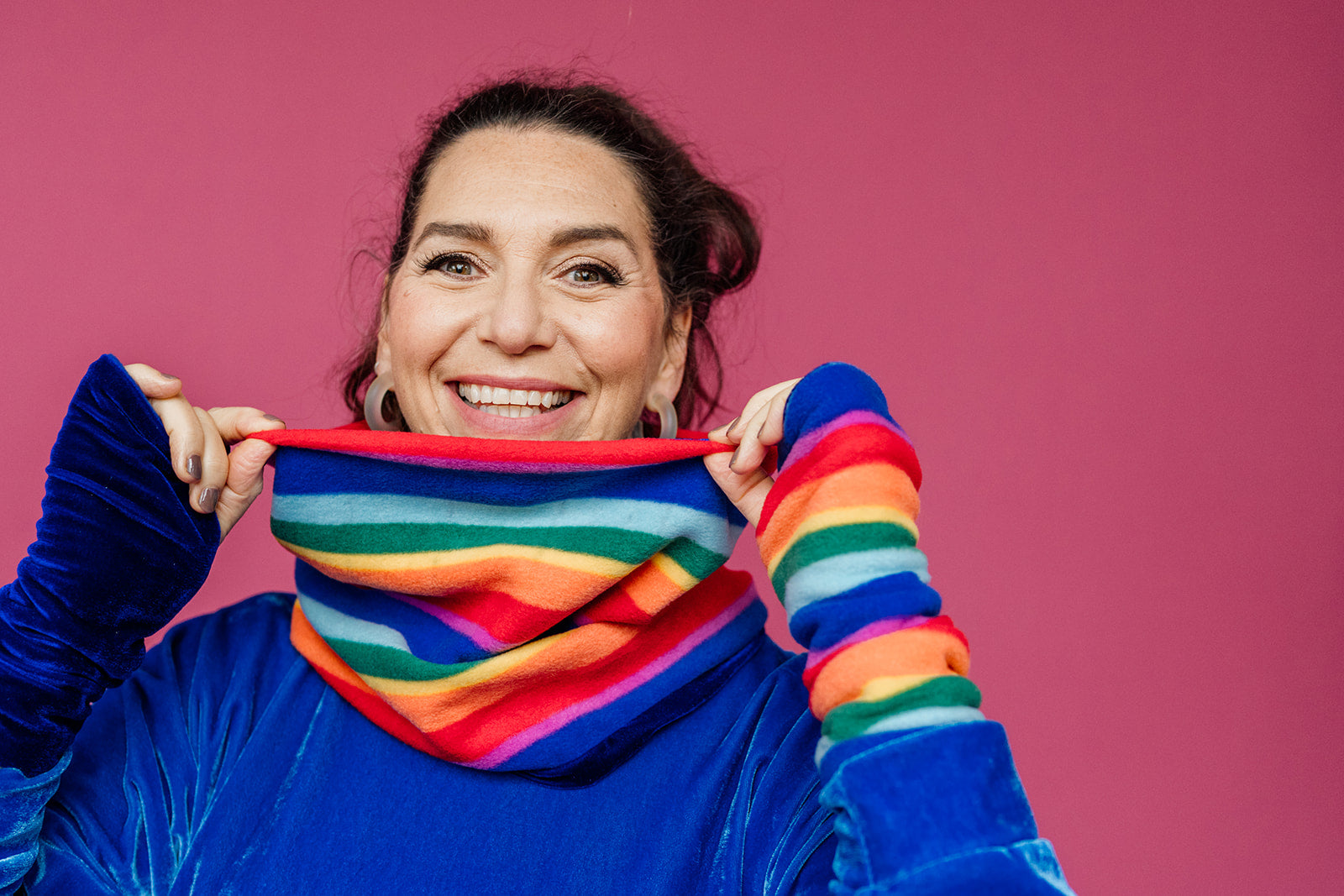 Reversible Fleece & Velvet Snood in Rainbow Stripe