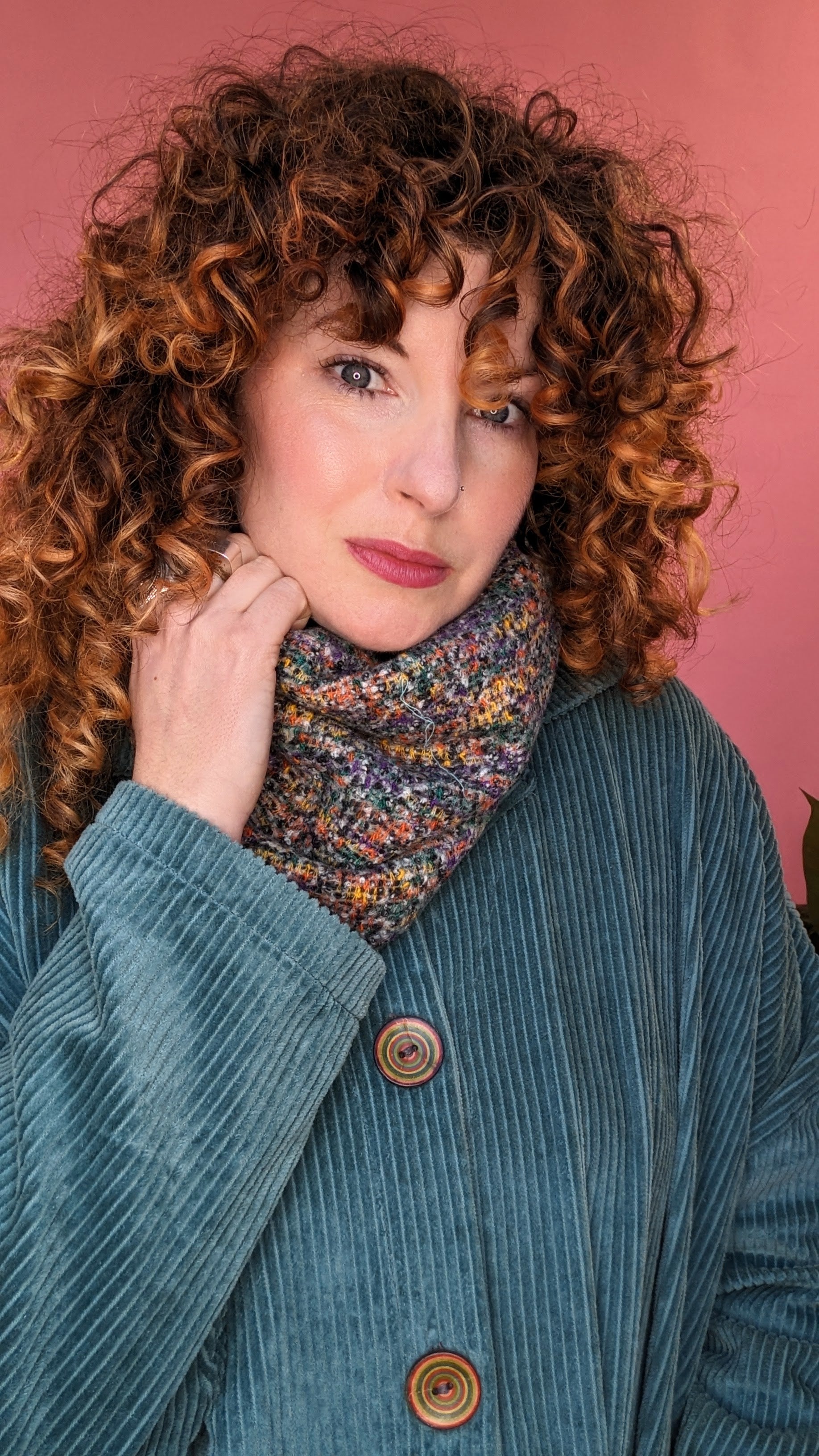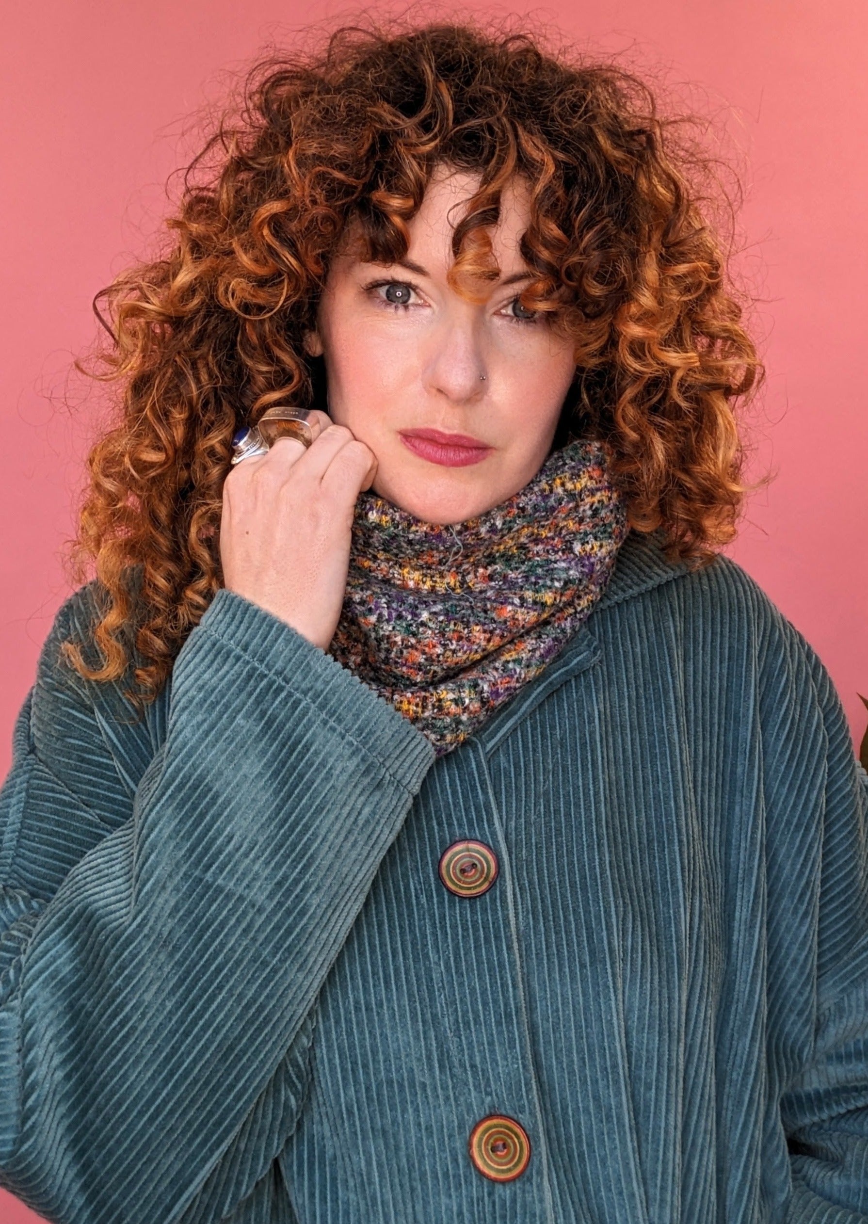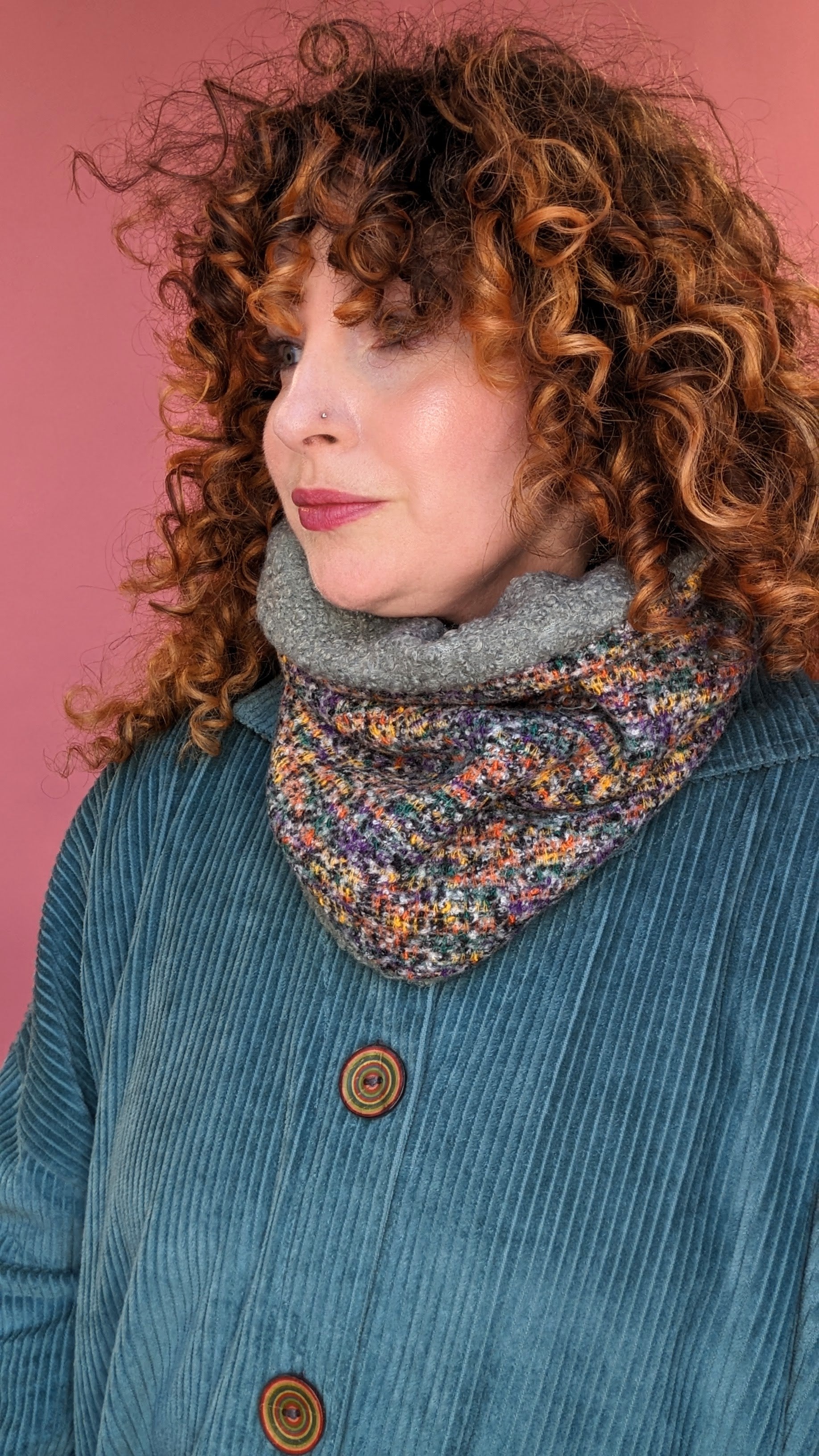 Stunning reversible snood backed with the cosiest bouclé fabric. The stunning print on the reverse give maximum wearability and a fab pop of colour!