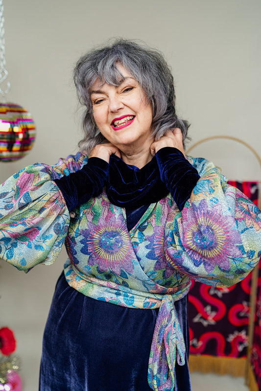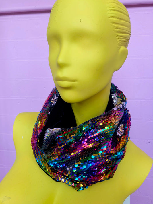 Sequin Embellished Velvet Cowl in Rainbow and Silver