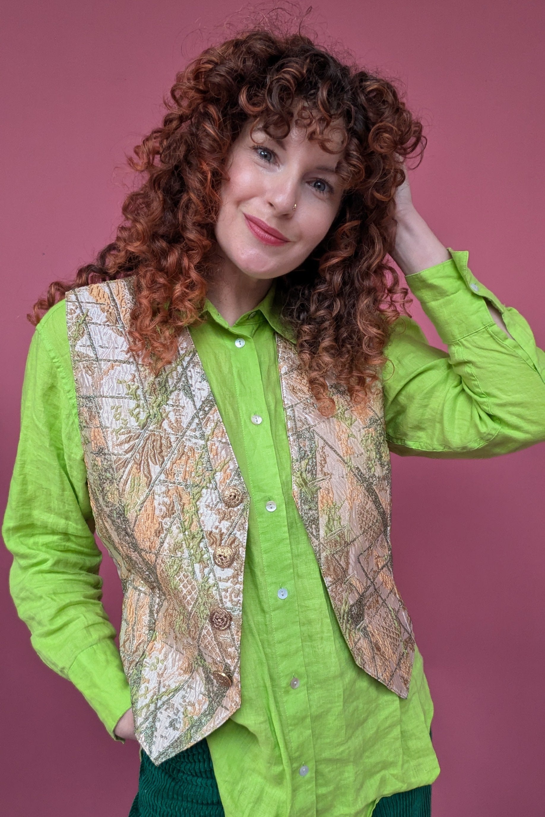 How stunning is this lined waistcoat! Made with our deluxe metallic brocades, these are just so special