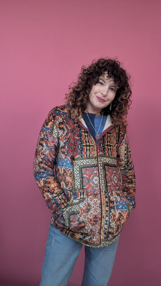 * Funnel Neck Pullover in Squiggle Blobs Dark Teal