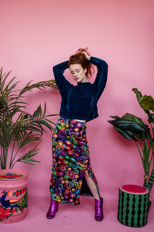 SALE - 3/4 Sleeve Top in Rainbow Sketch Print M