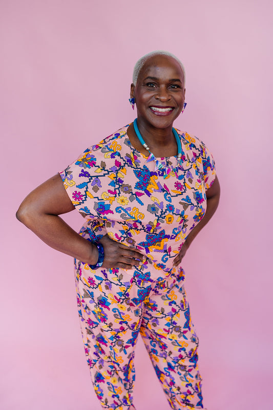 SALE - 3/4 Sleeve Top in Rust Floral S, L