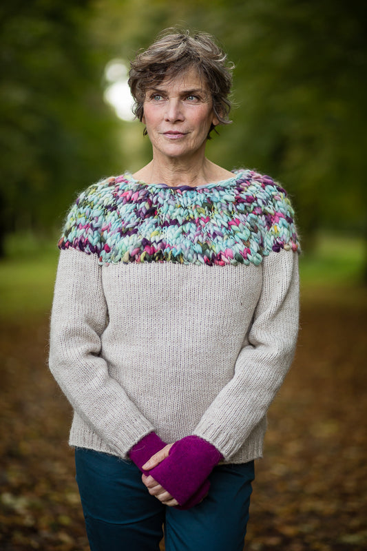 SALE Hand Knit Jumper in Cream Alpaca and Merino Wool S/M