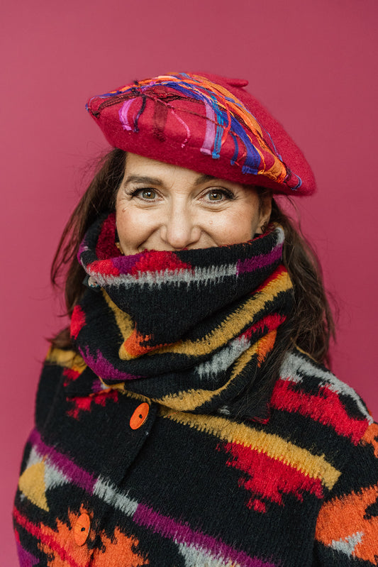 Large Ruffle Scrunchie Headband in Gold & Coral