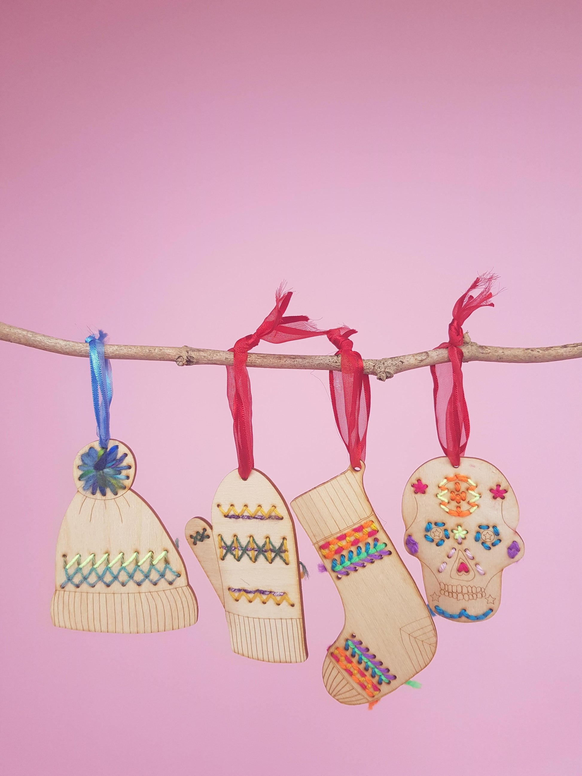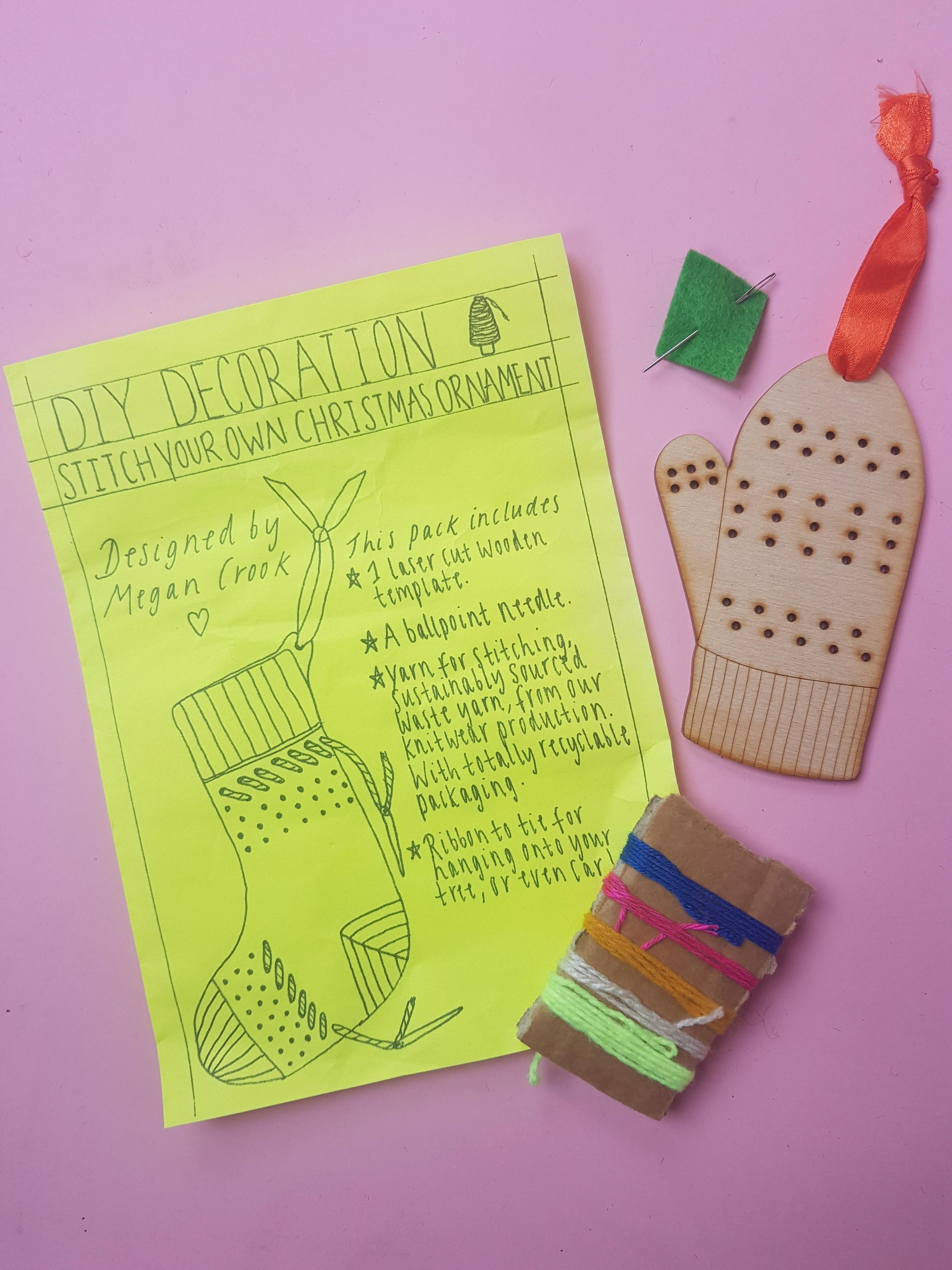 These Stitch Your Own Decoration kits make a great little stocking stuffer for little and big kids alike. The wooden templates are laser cut locally, come with assorted yarn from surplus knitwear production and wrapped individually in recyclable packaging.