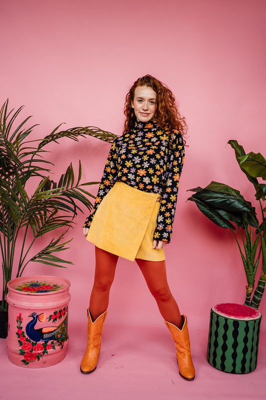 SALE Funnel Neck Pullover in Green Floral XS,M