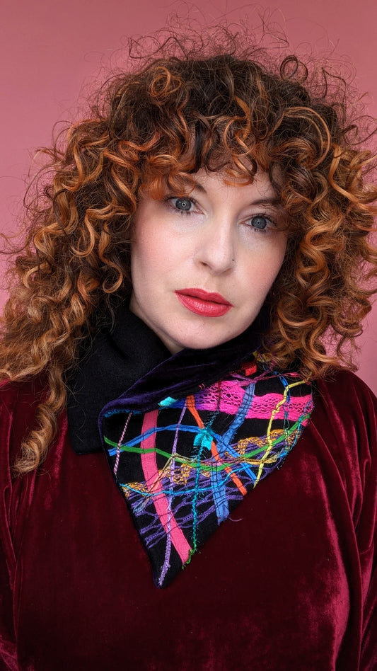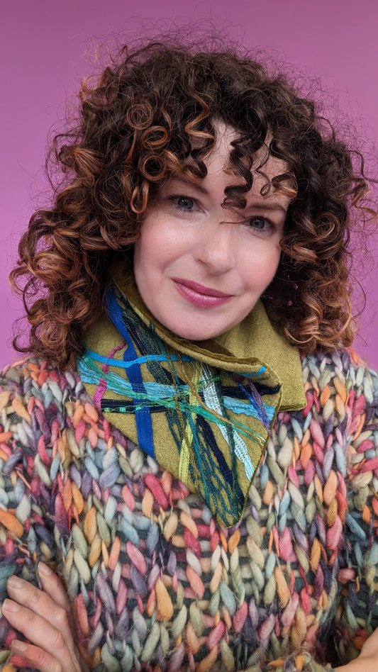 Embellished Wool & Velvet Neck Wrap in Olive Green