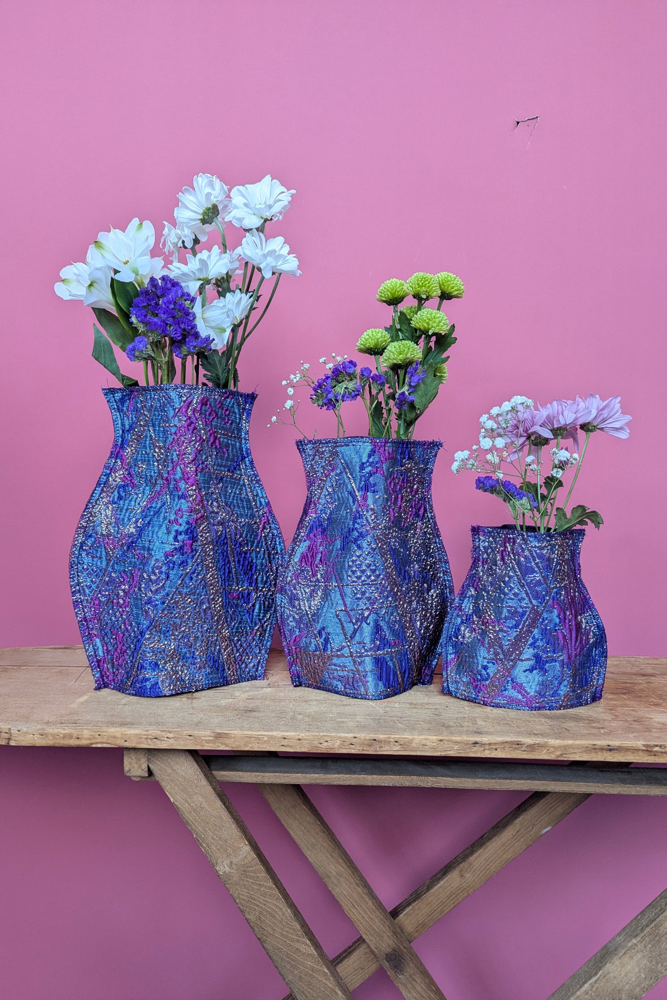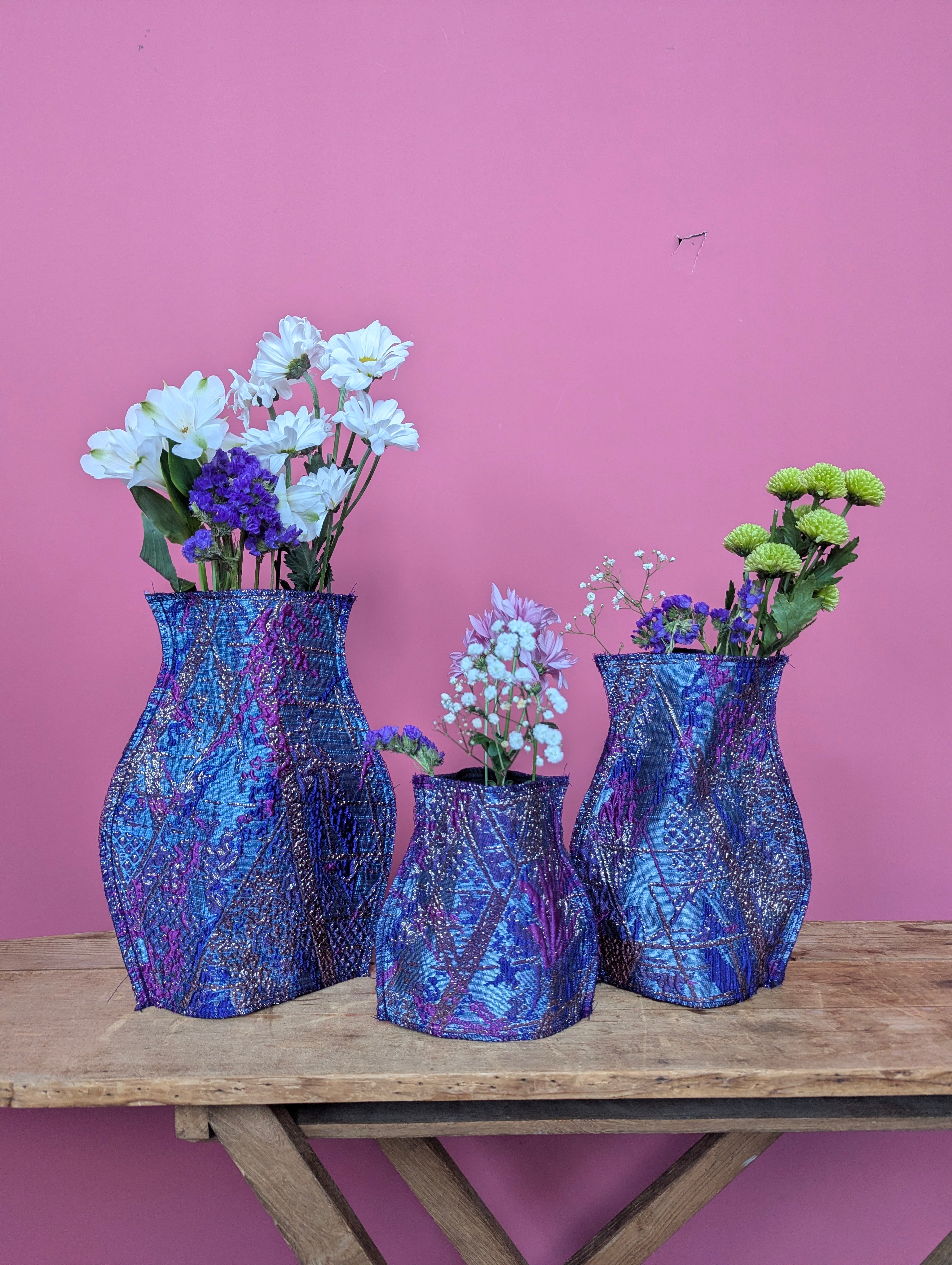 Introducing these stunning new pop-up vases! Available in some of our signature special fabric these opulent vases covers will complete any table arrangement or side board.