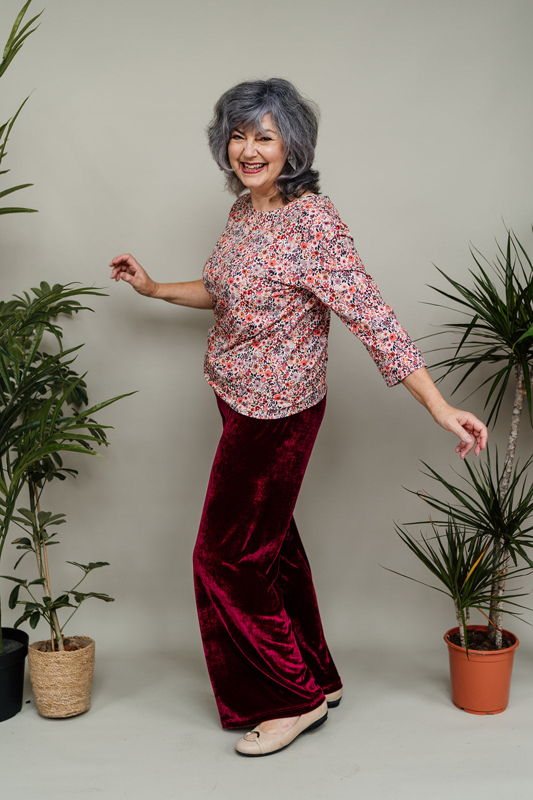 The top is easy fitting and features a fully faced crew neckline, 3/4 length sleeves, and a super soft organic cotton jersey.