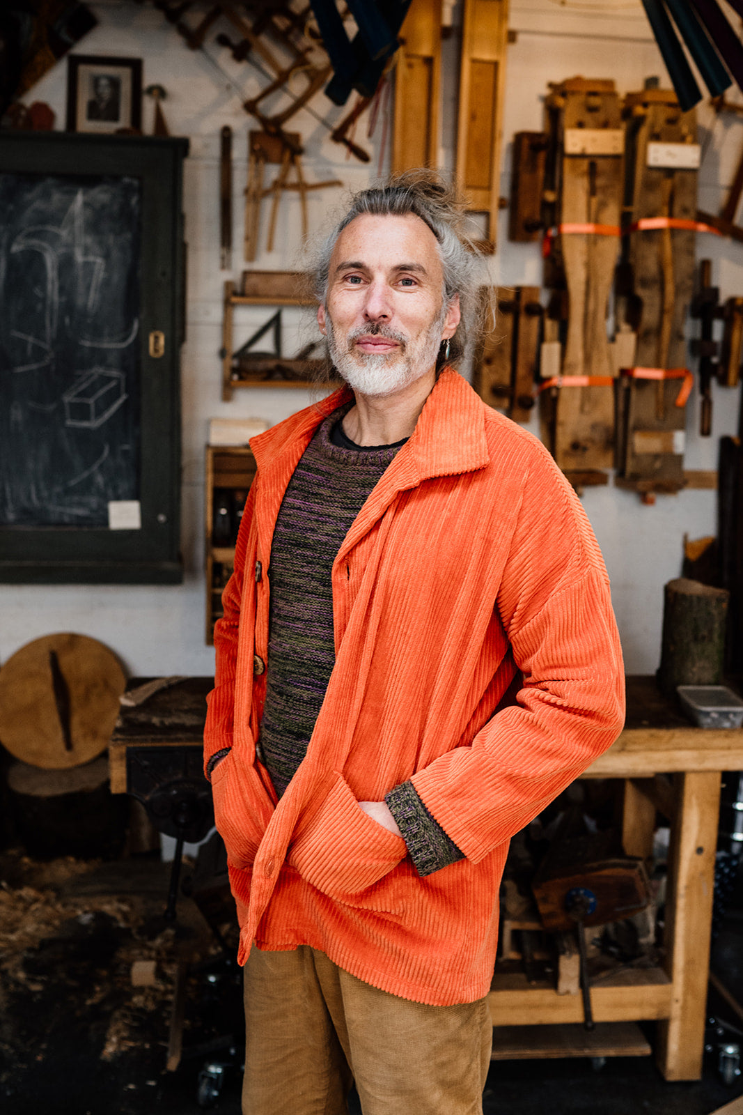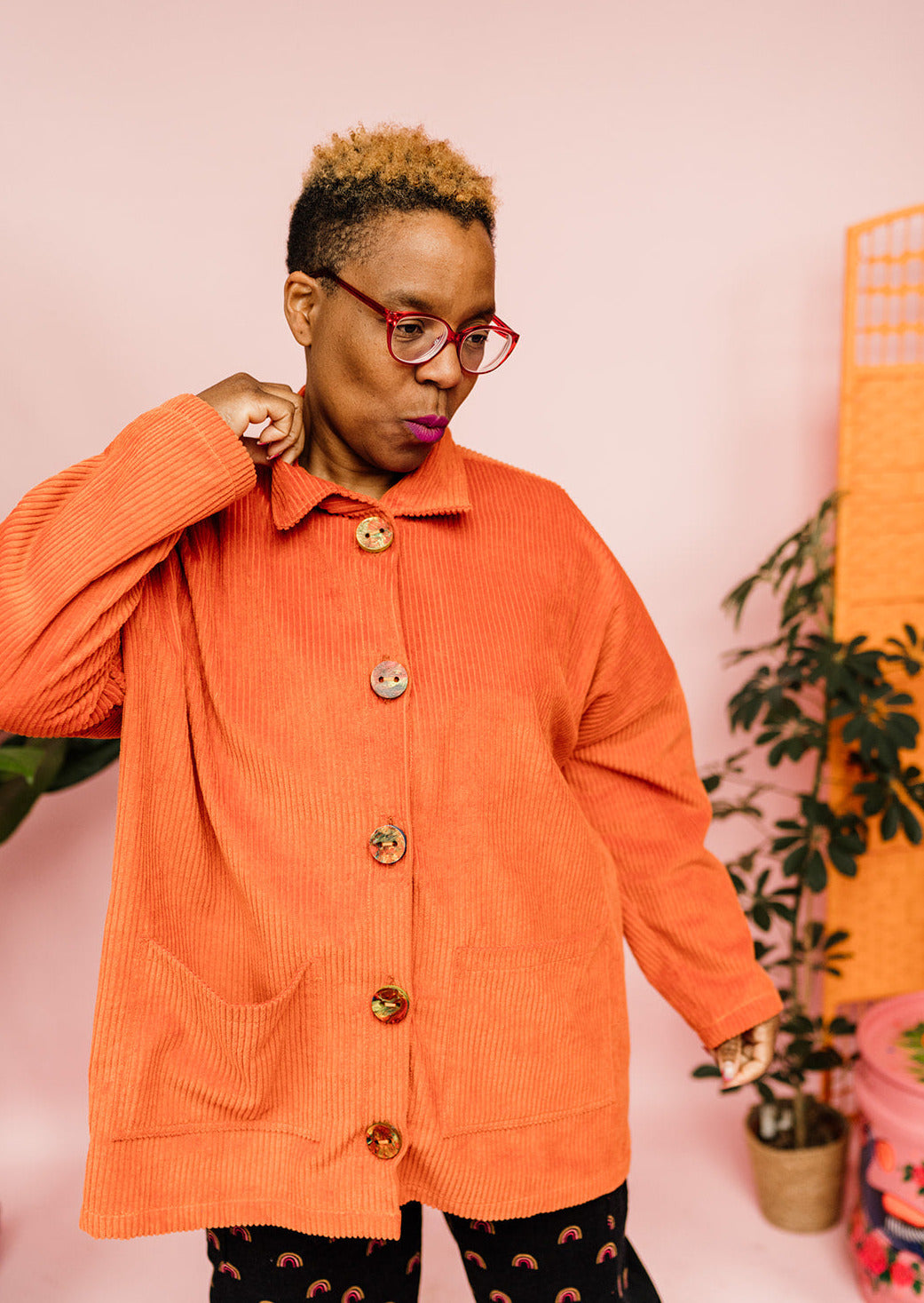 Handmade chore jacket in super soft chunky corduroy. This casual jacket is an everyday essential. Comfortable, stylish and functional. Features drop shoulder, collar detail and pockets. Like the style but want it cropped? Let us know, we're happy to help!