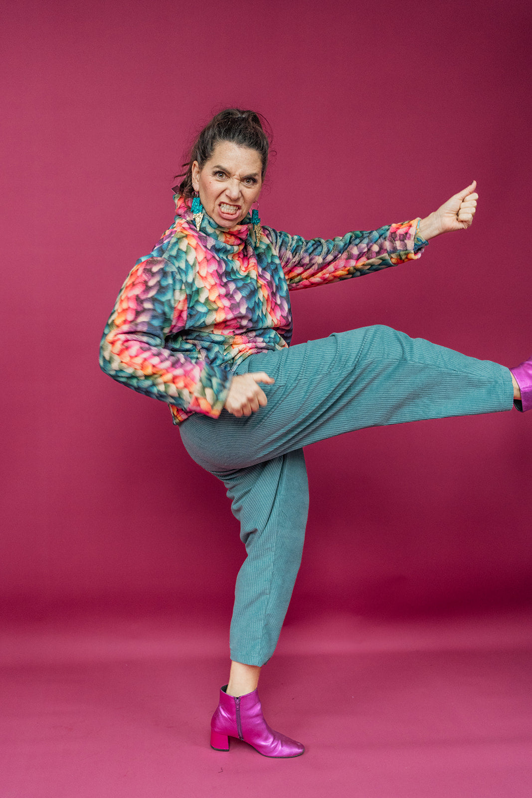 Slouchy fit jumper with funnel neck and drop shoulders. Wear on its own or layered over a high neck for extra warmth in the chillier months! A beautiful all over print in the snuggliest fleece fabric!