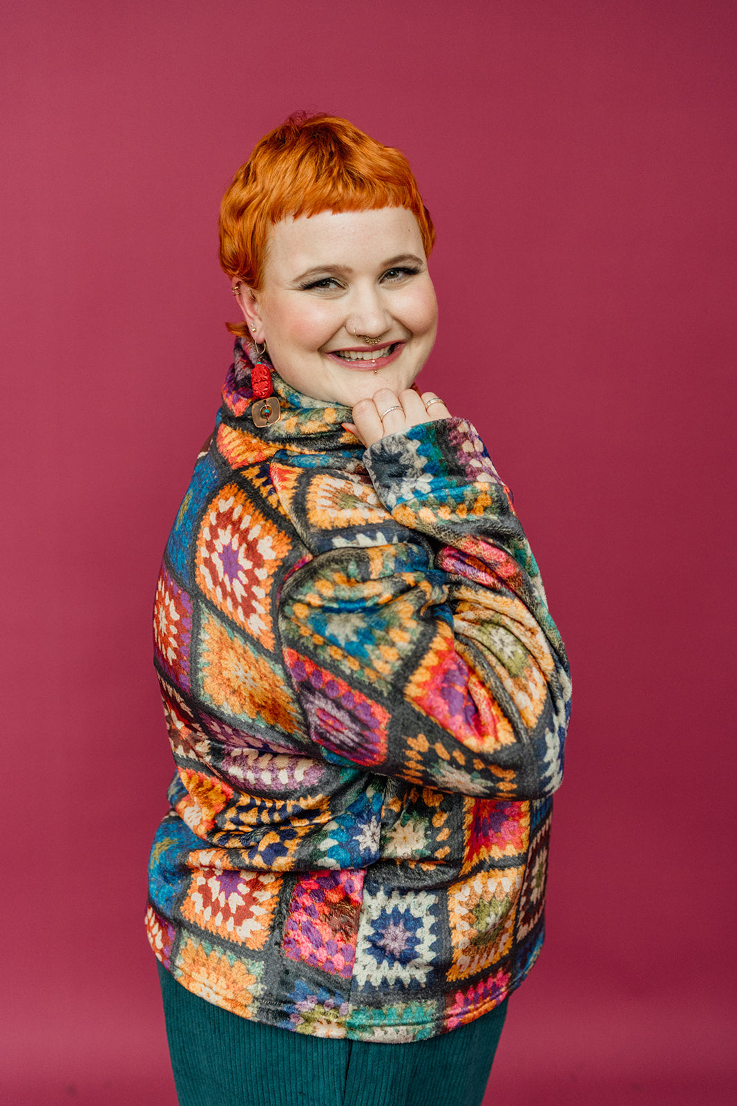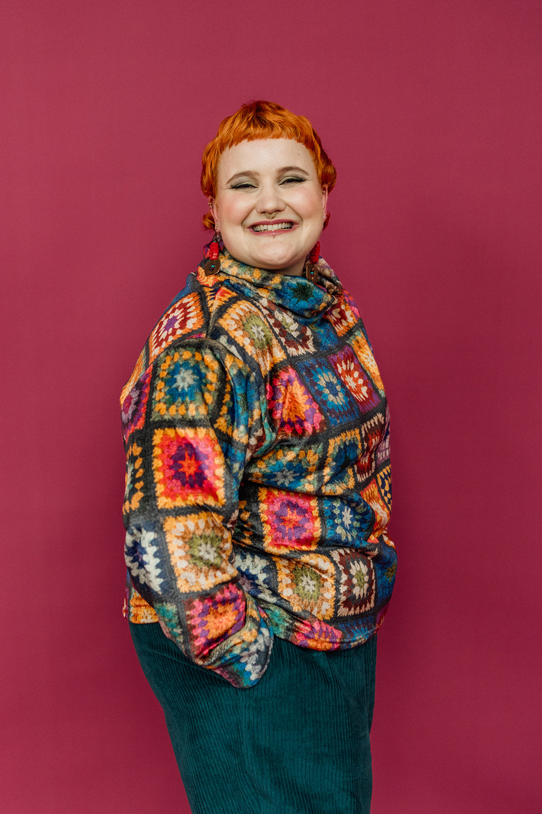 Slouchy fit jumper with funnel neck and drop shoulders. Wear on its own or layered over a high neck for extra warmth in the chillier months! A beautiful all over print, this ones pretty special and will be a limited run!