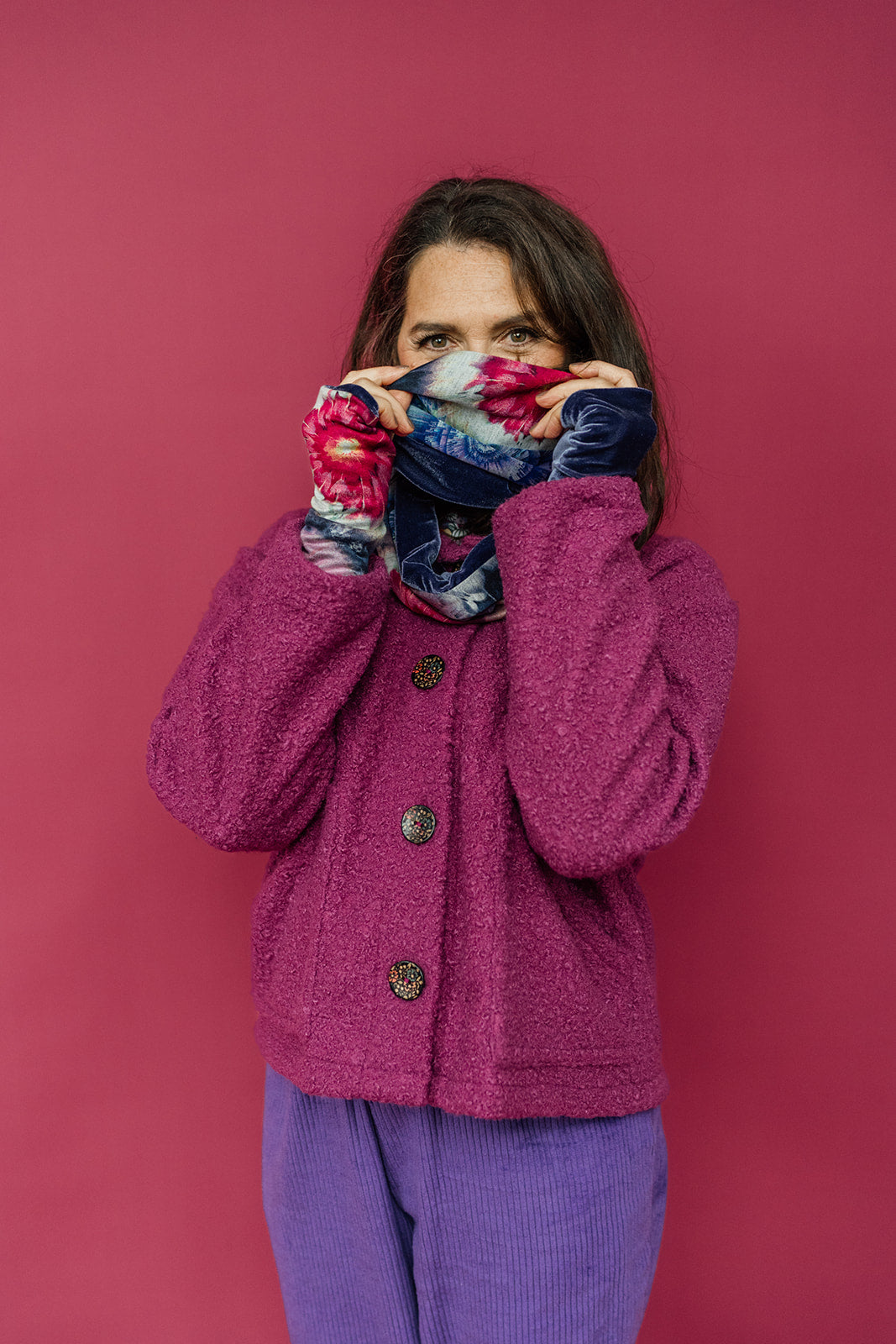 Beautiful reversible infinity scarf. Vividly printed viscose is backed with our super soft signature velvet. An endless loop of colour and pattern!