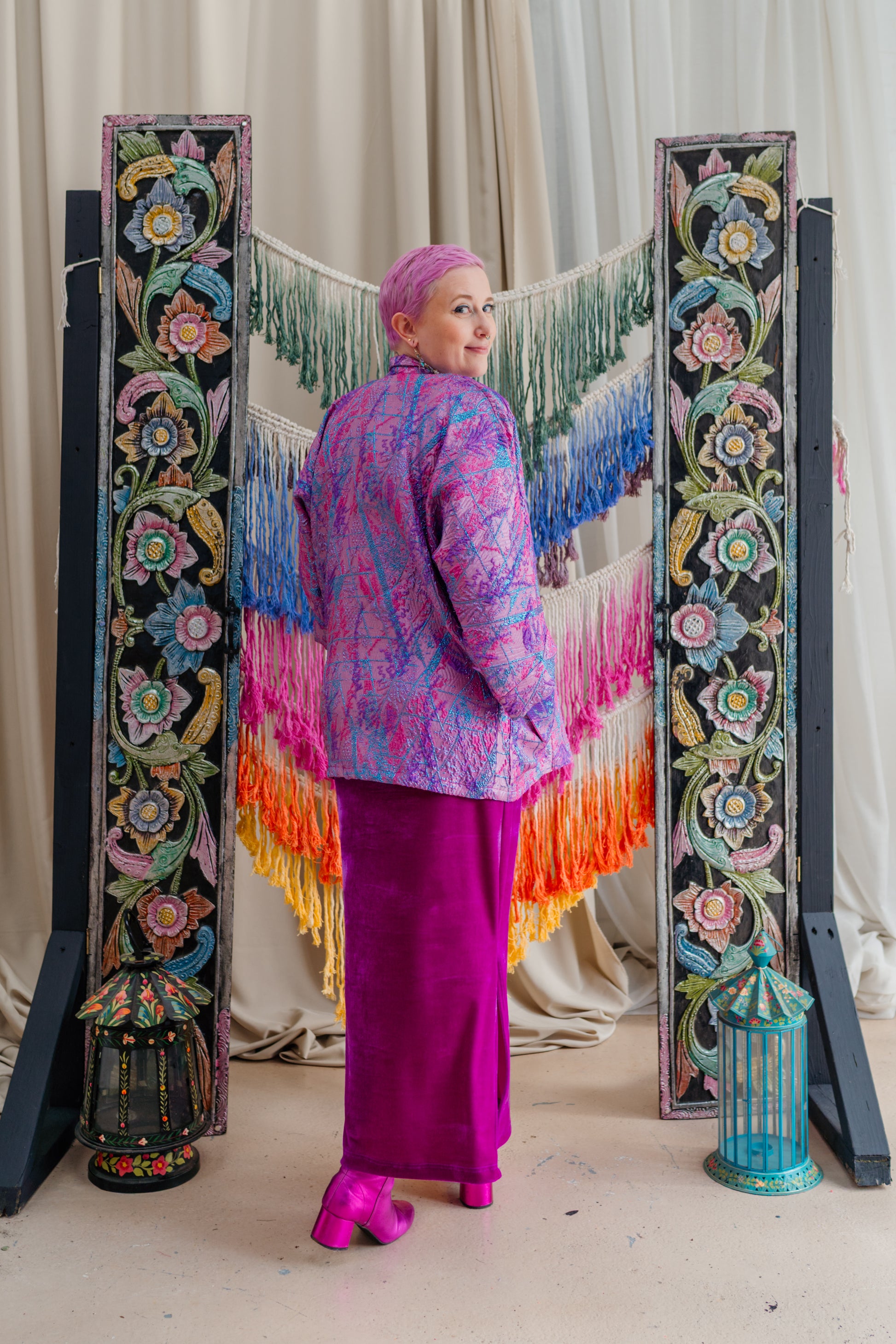 Handmade jacket in the most magical glitter fabric! Perfect for weddings and special occasions, these jackets are truly remarkable!