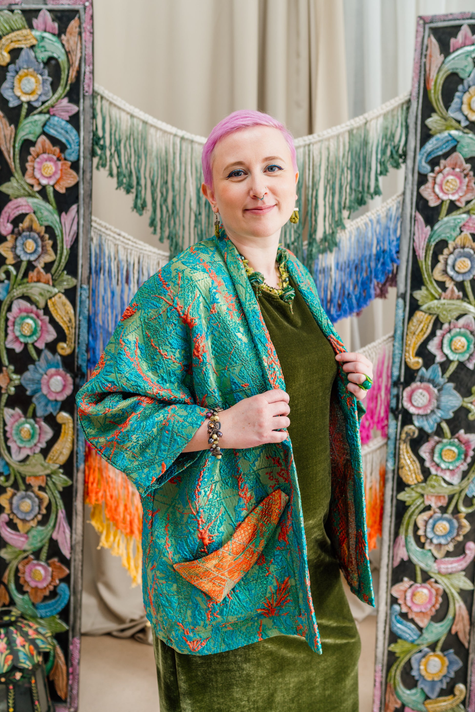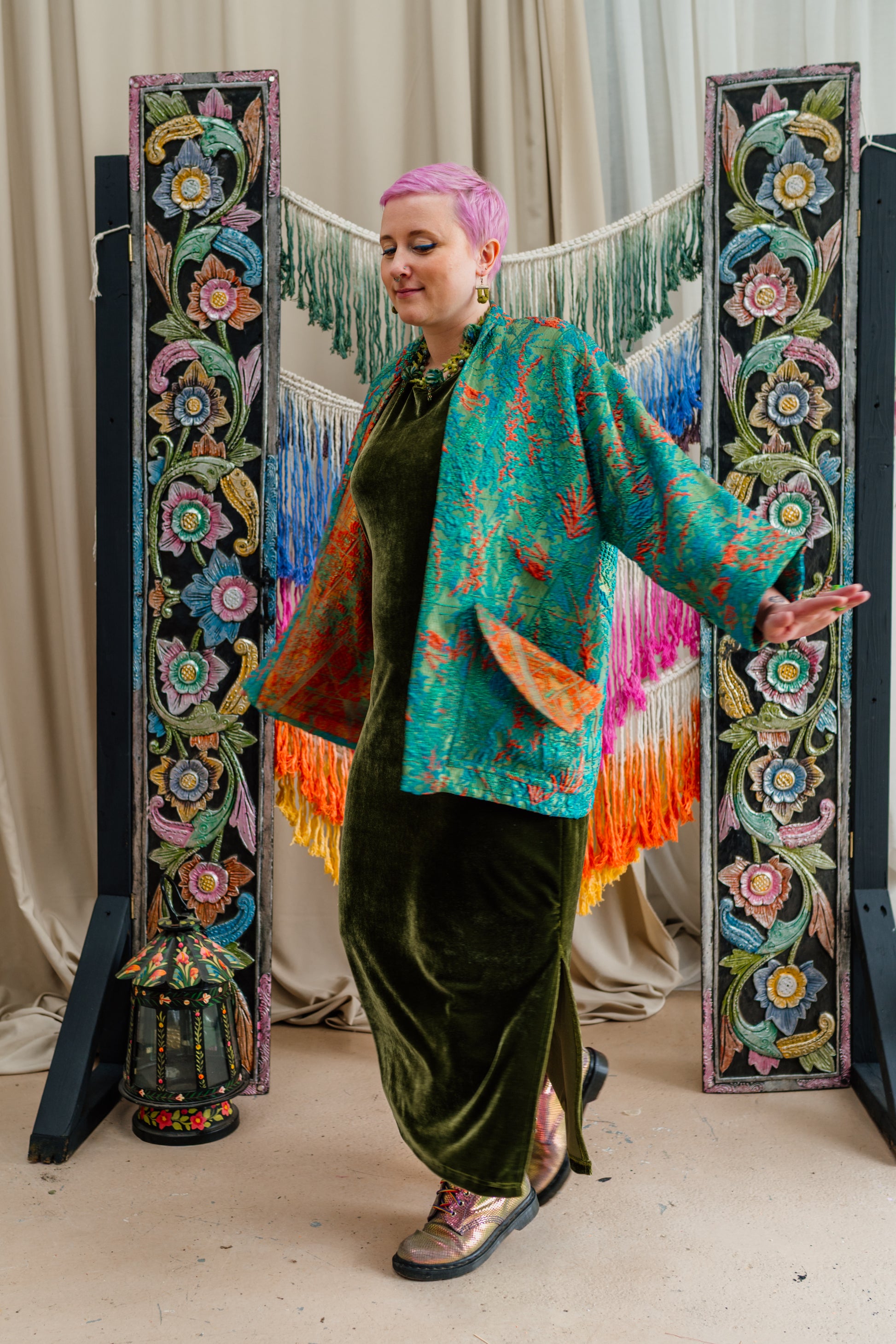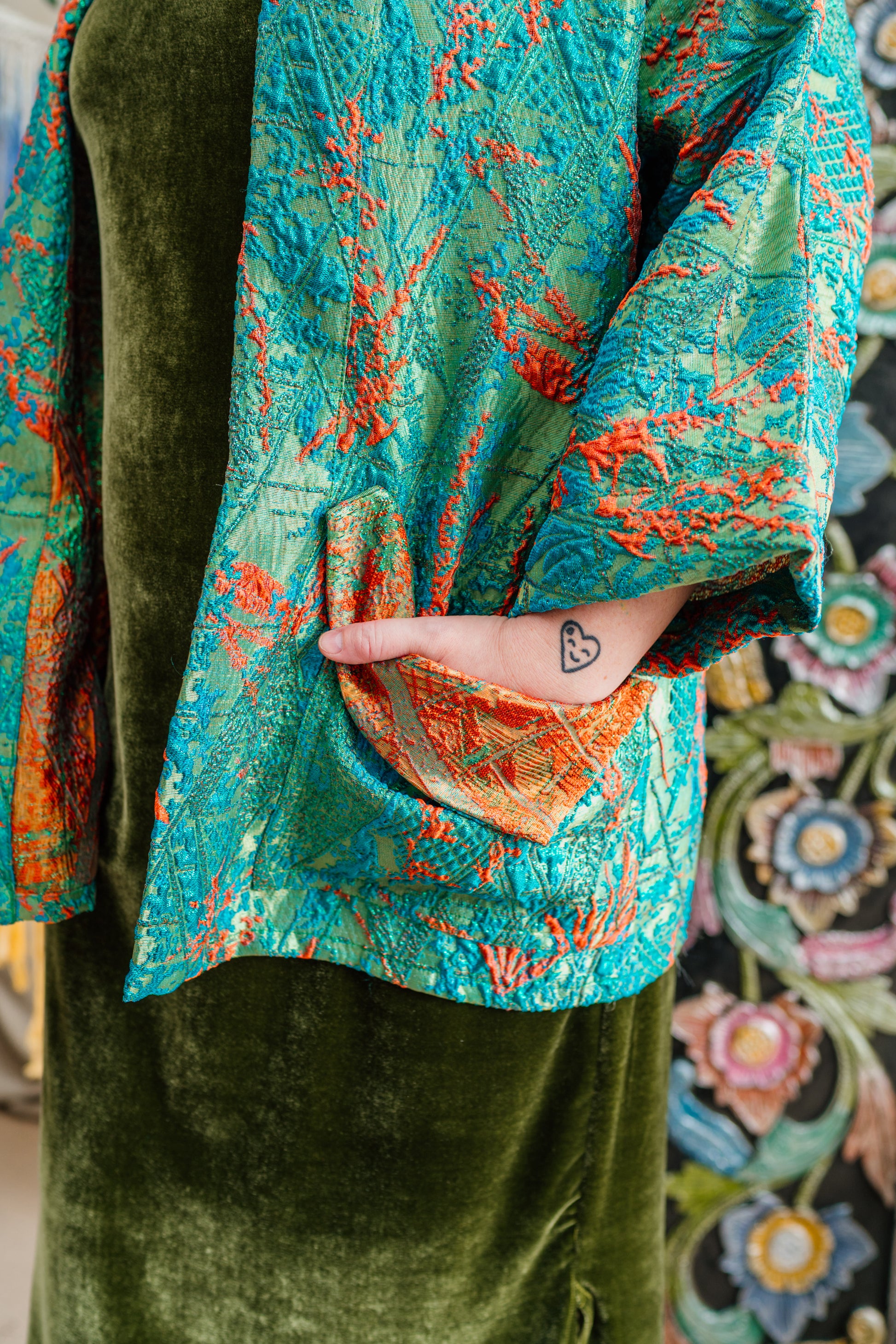Handmade jacket in the most magical glitter fabric! Perfect for weddings and special occasions, these jackets are truly remarkable!