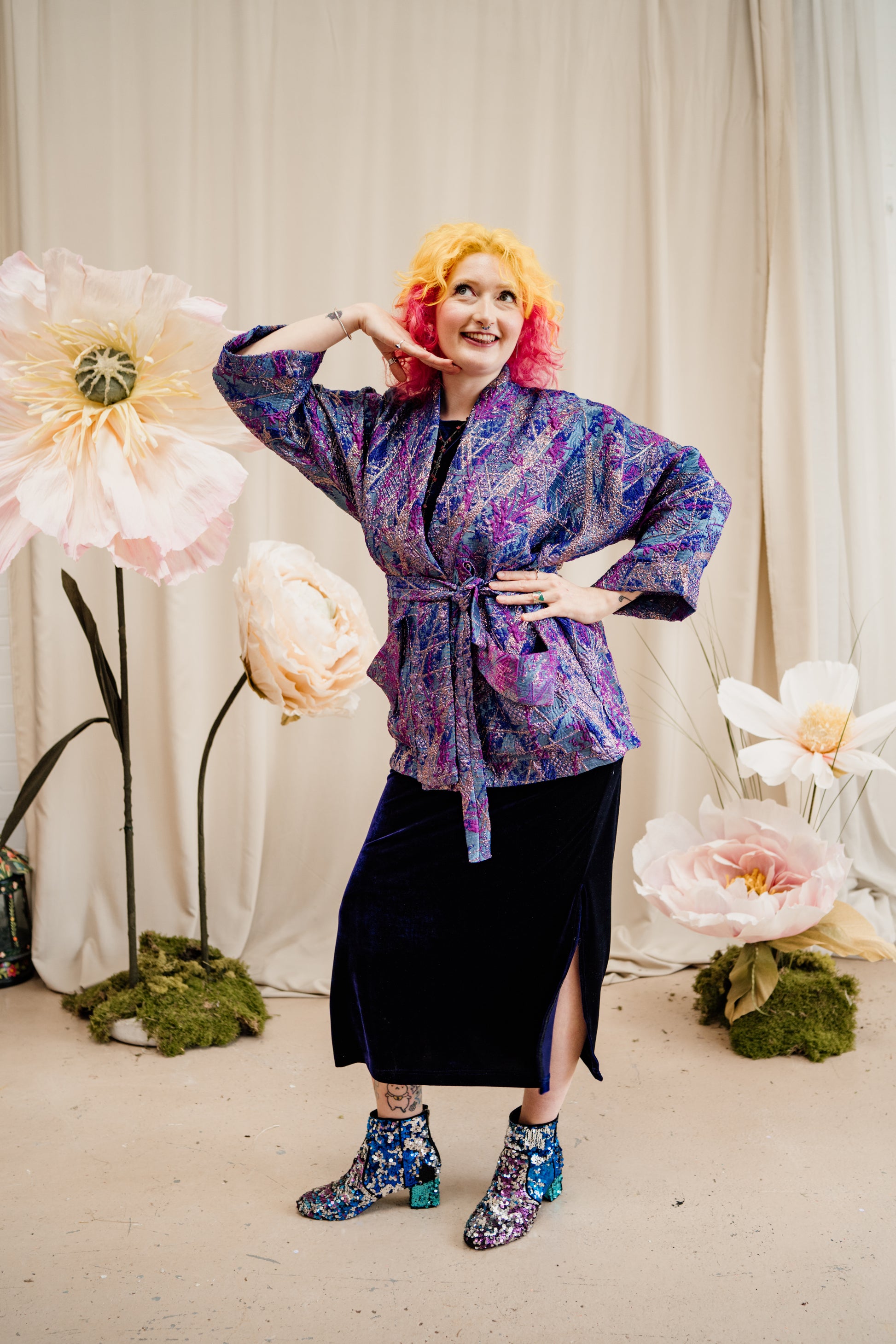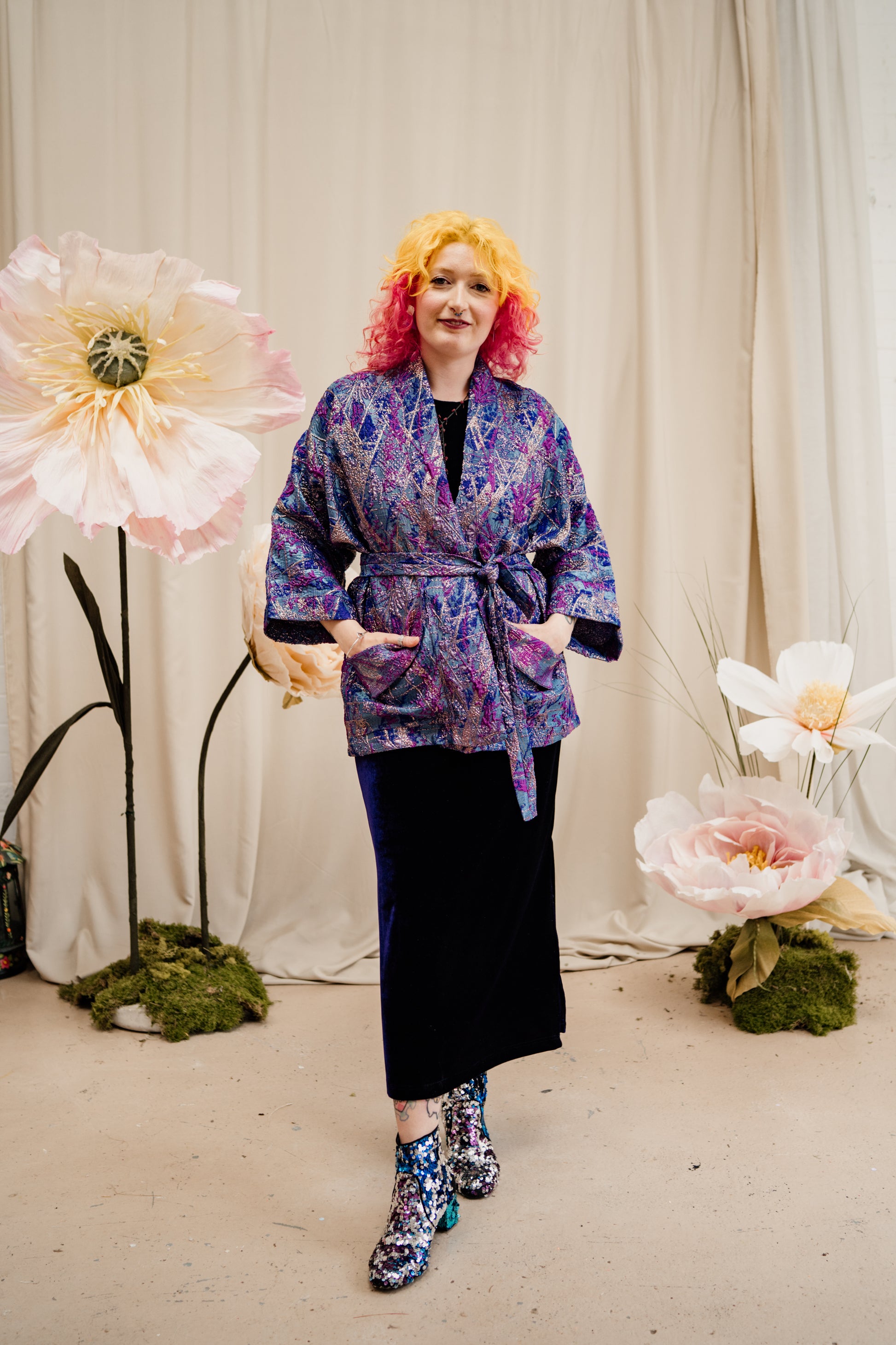 Handmade jacket in the most magical glitter fabric! Perfect for weddings and special occasions, these jackets are truly remarkable!