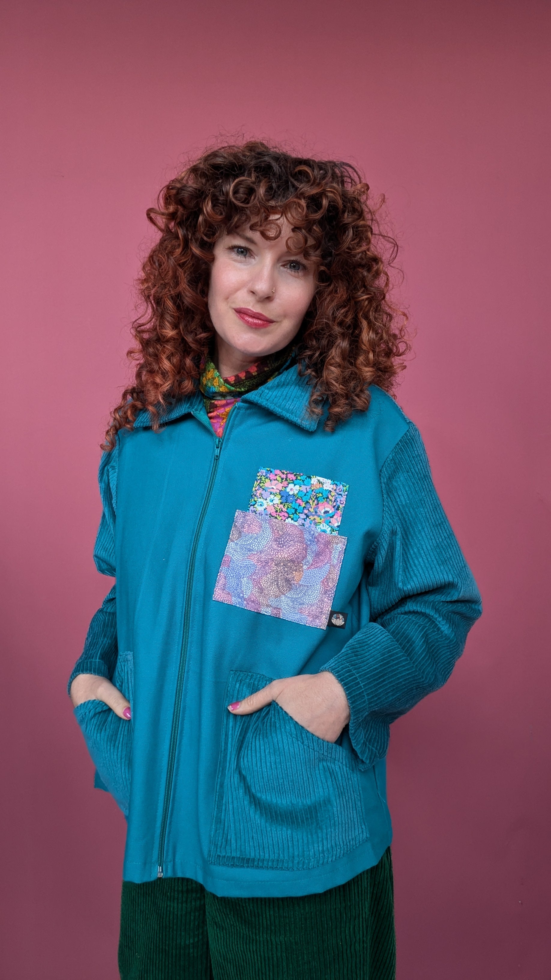 These denim like cord clash jackets are so fun! Each one features a completely unique Liberty patch pocket which co-ordinates perfectly with the tones of each jacket.