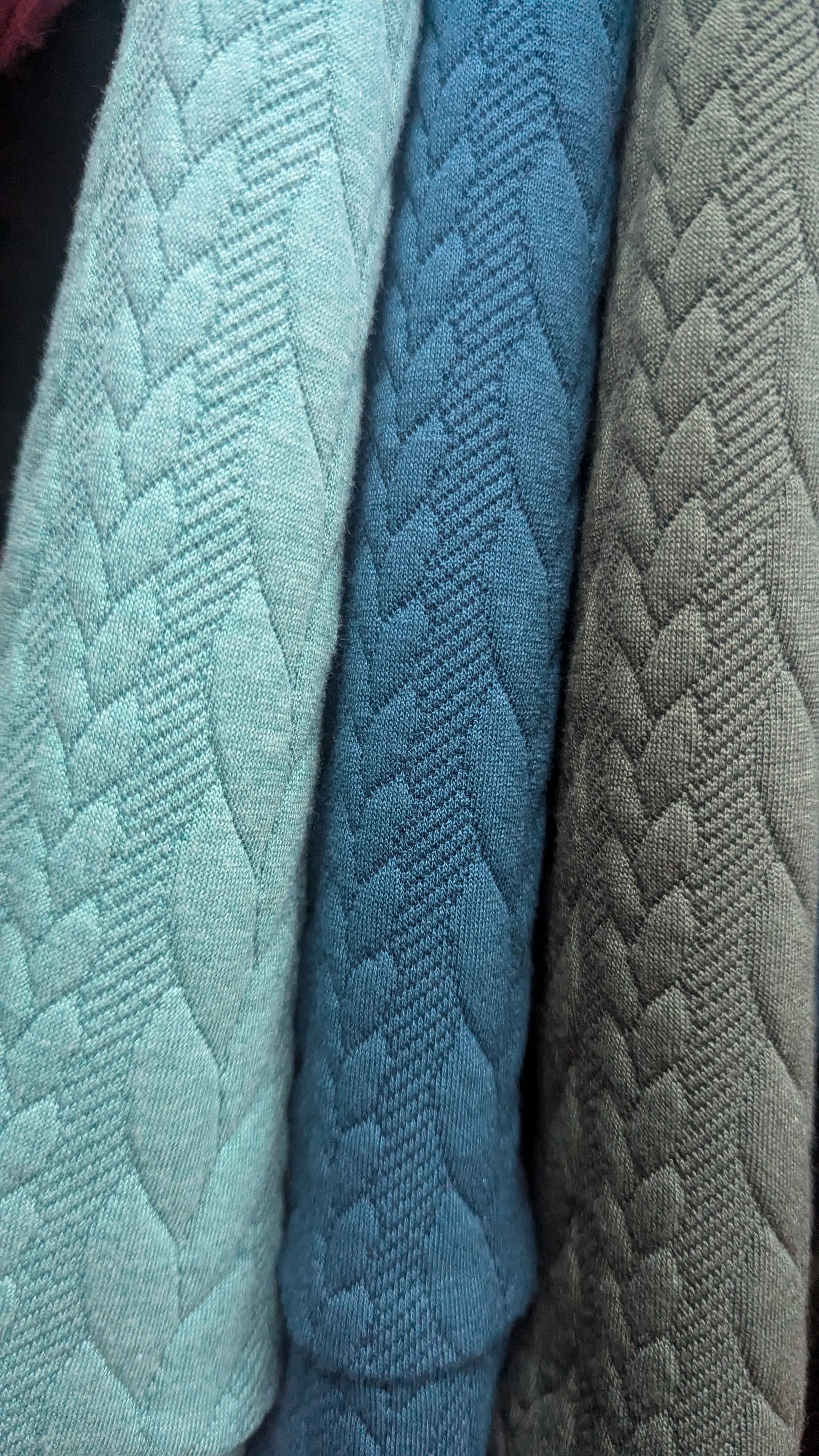 Patchwork 95% CO 5% EL, Cable Knit 81% PE 16% VI 3% EL