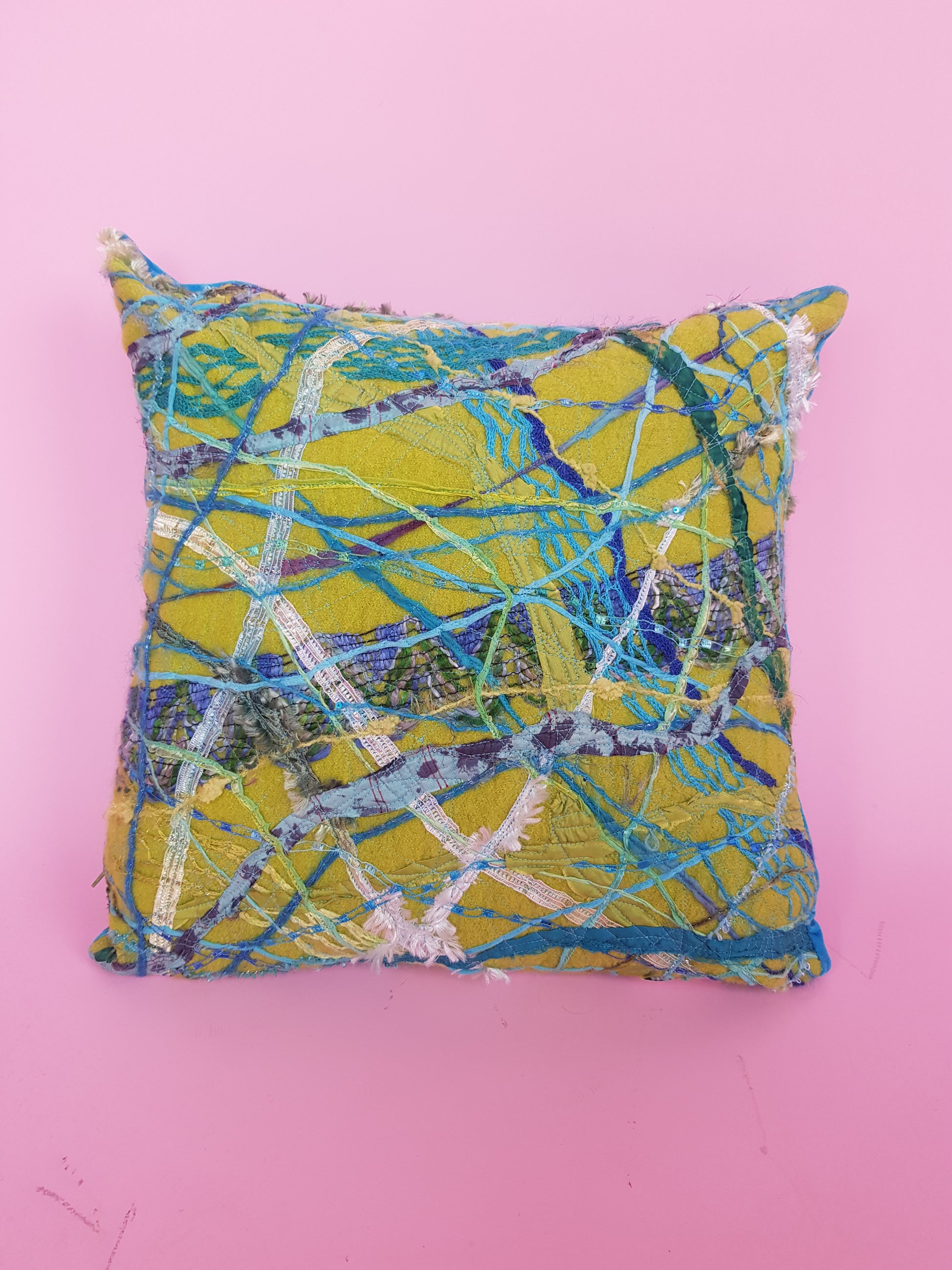 Velvet, Embellished Boiled Wool, Fibre Pillow Insert.