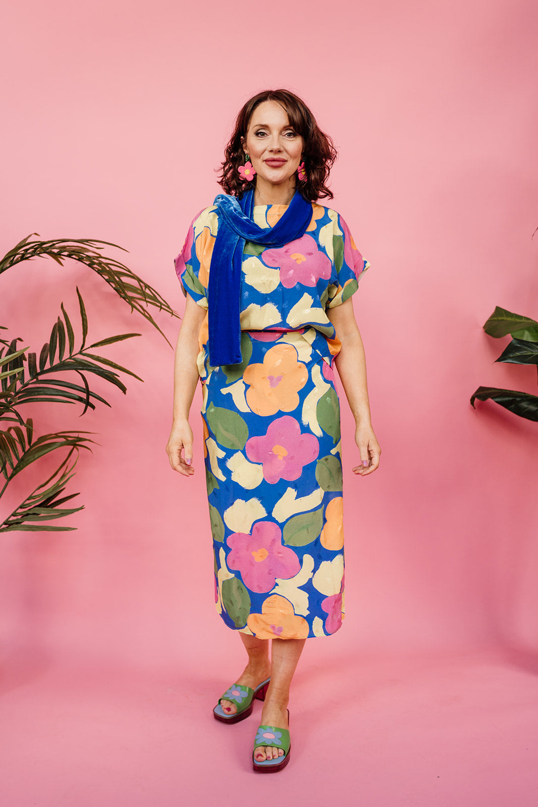 Stunning wrap skirt in the most beautiful bold floral print. Perfect for holidays, special occasions and general summer fun!