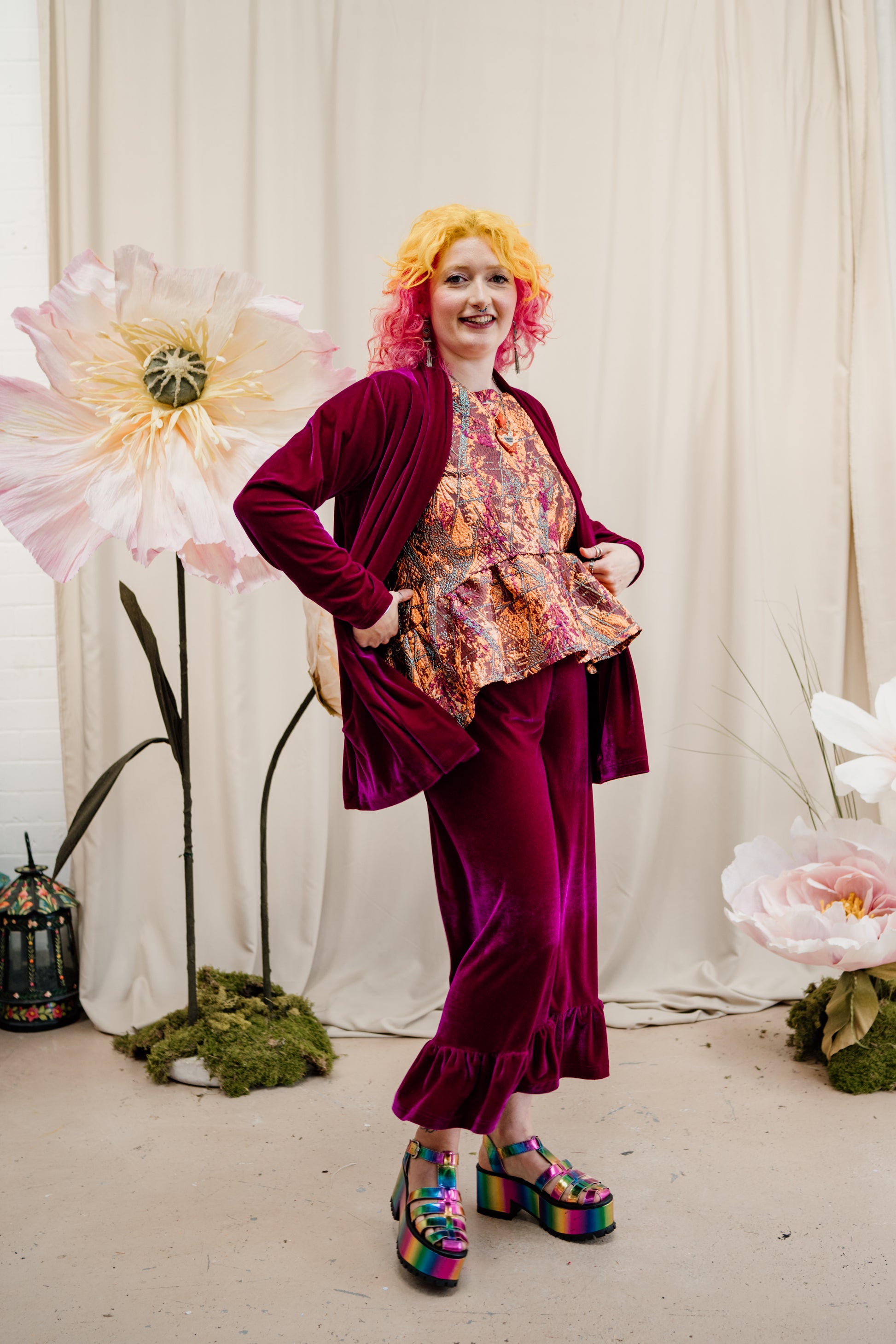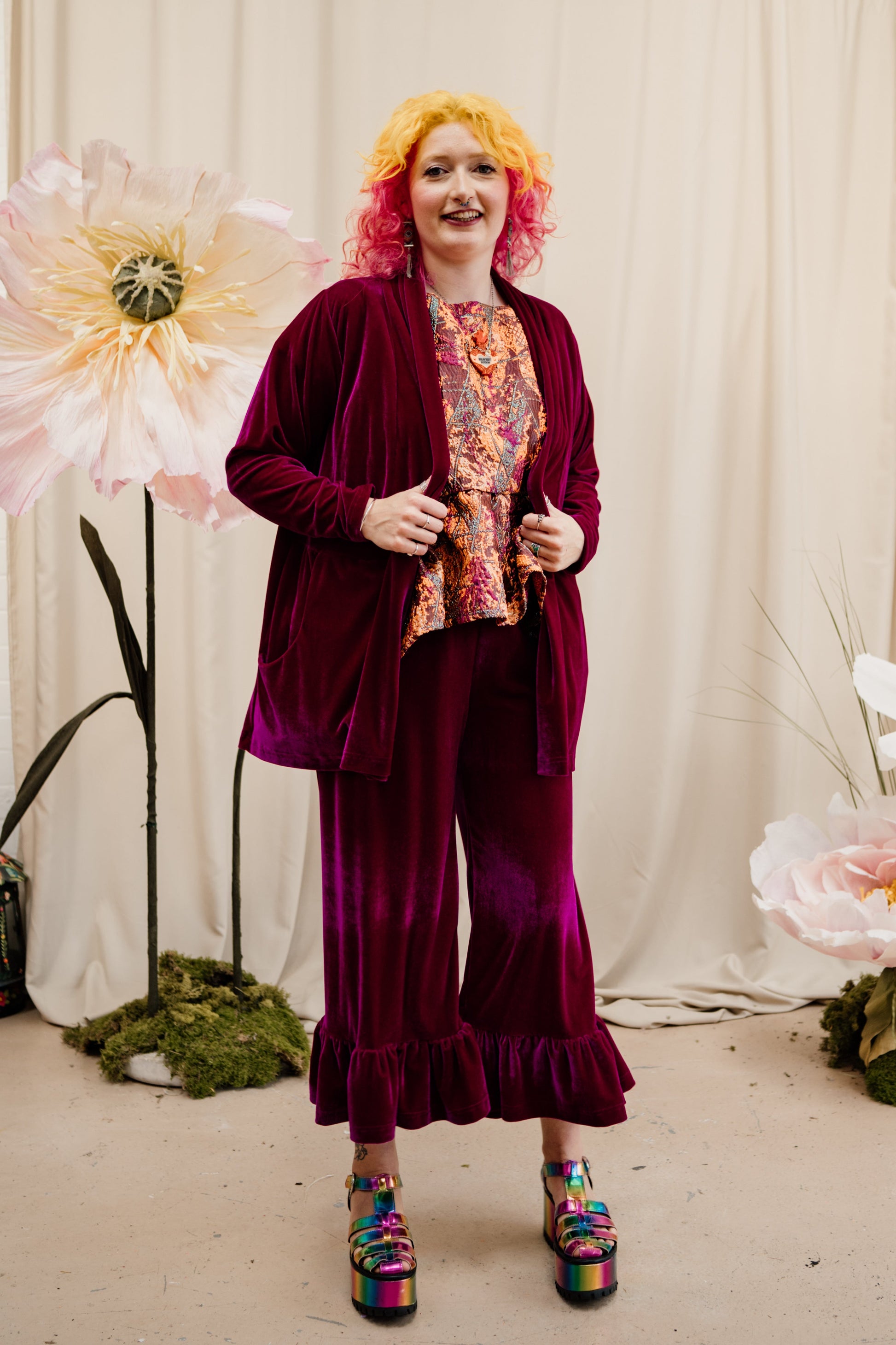 Handmade jacket in the most luxuriously soft velvet. Perfect for layering through the seasons or dressing up for a special occasion!