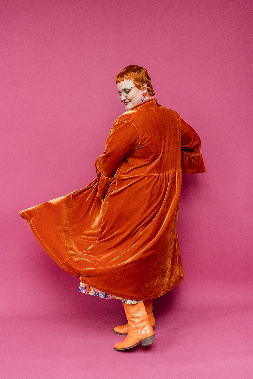 Velvet Ruffle Maxi Cardigan in Burnt Orange