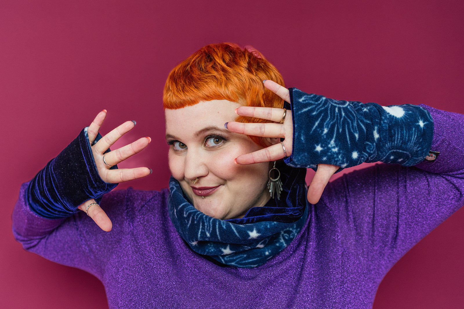 You asked and we delivered! Our new reversible wrist warmers are the perfect combo of print and colour AND they have thumb holes too! Lined with super soft velvet or flip them around for snuggly fleece. These make a wonderful gift or cosy colour pop to any outfit!