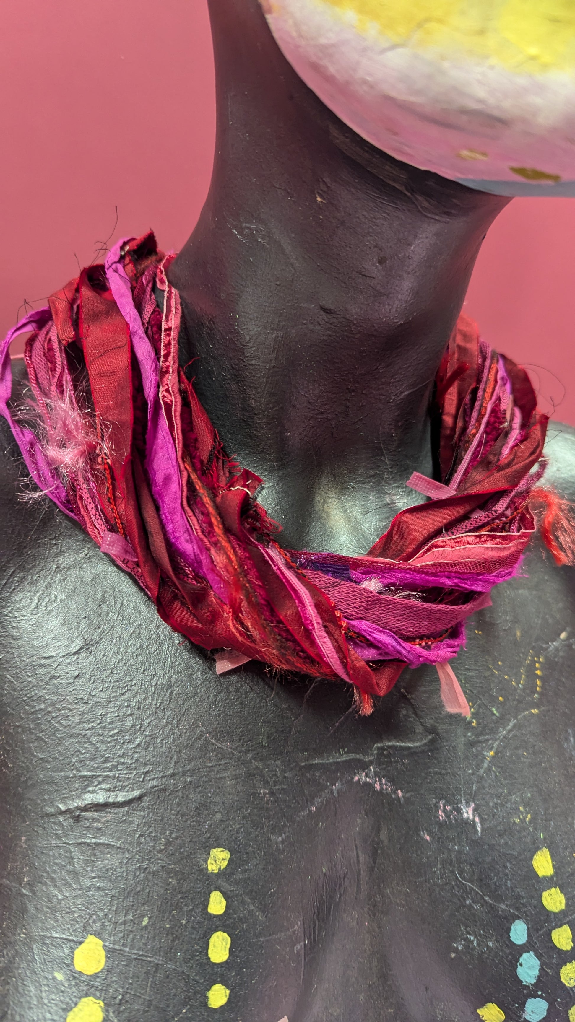 Silk Yarn Necklace in Pink and Red