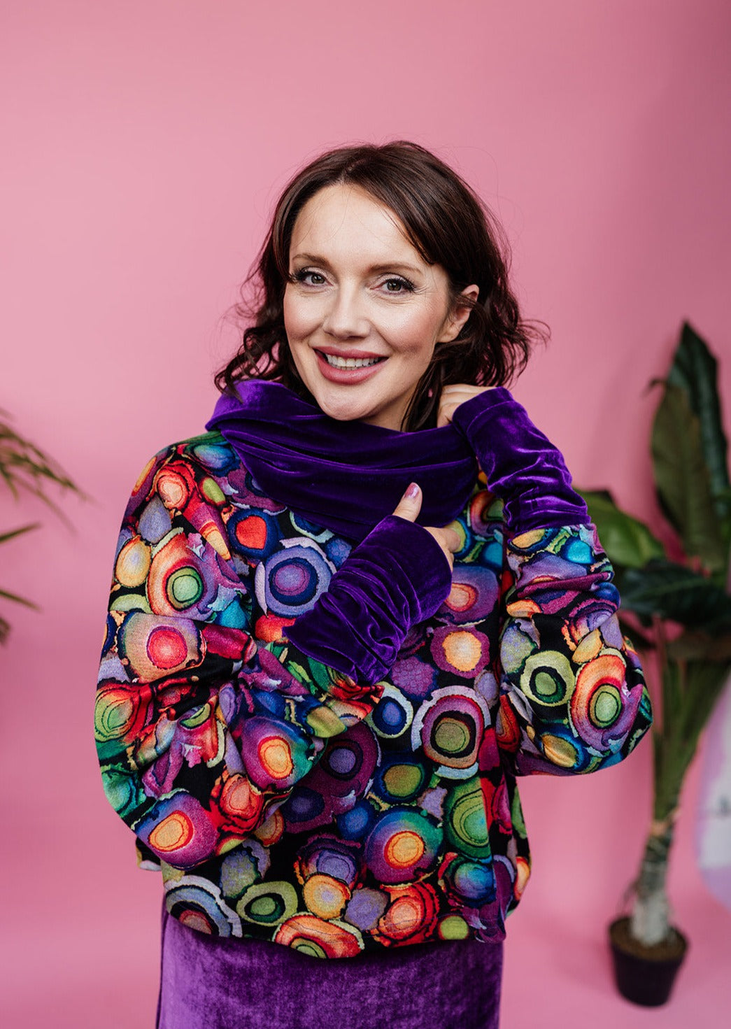 Velvet cowl and wrist warmers set in Purple. This colourway catches the light and gives a beautiful shimmer.