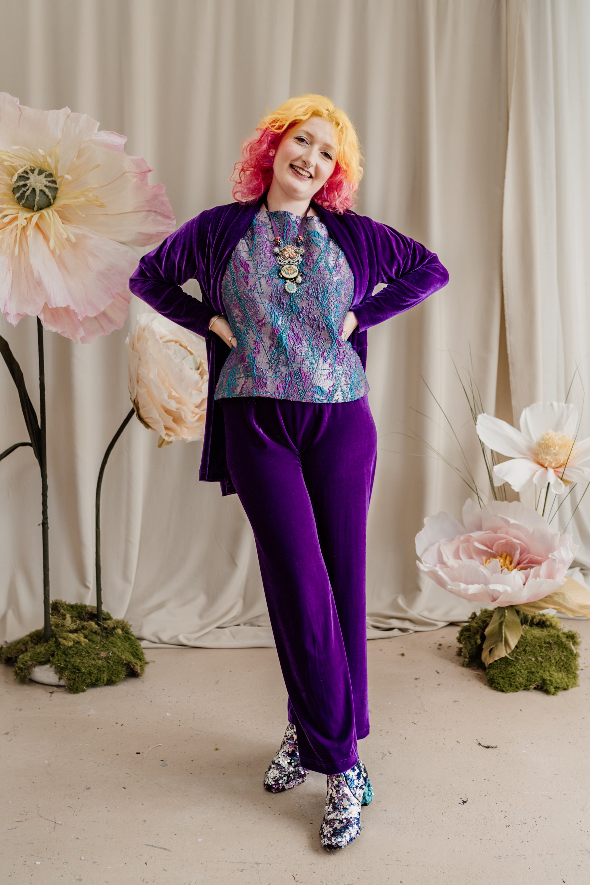 Handmade jacket in the most luxuriously soft velvet. Perfect for layering through the seasons or dressing up for a special occasion!