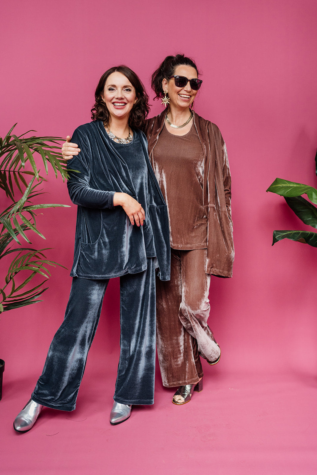Styled with Tunic and Trousers in Slate Grey Velvet