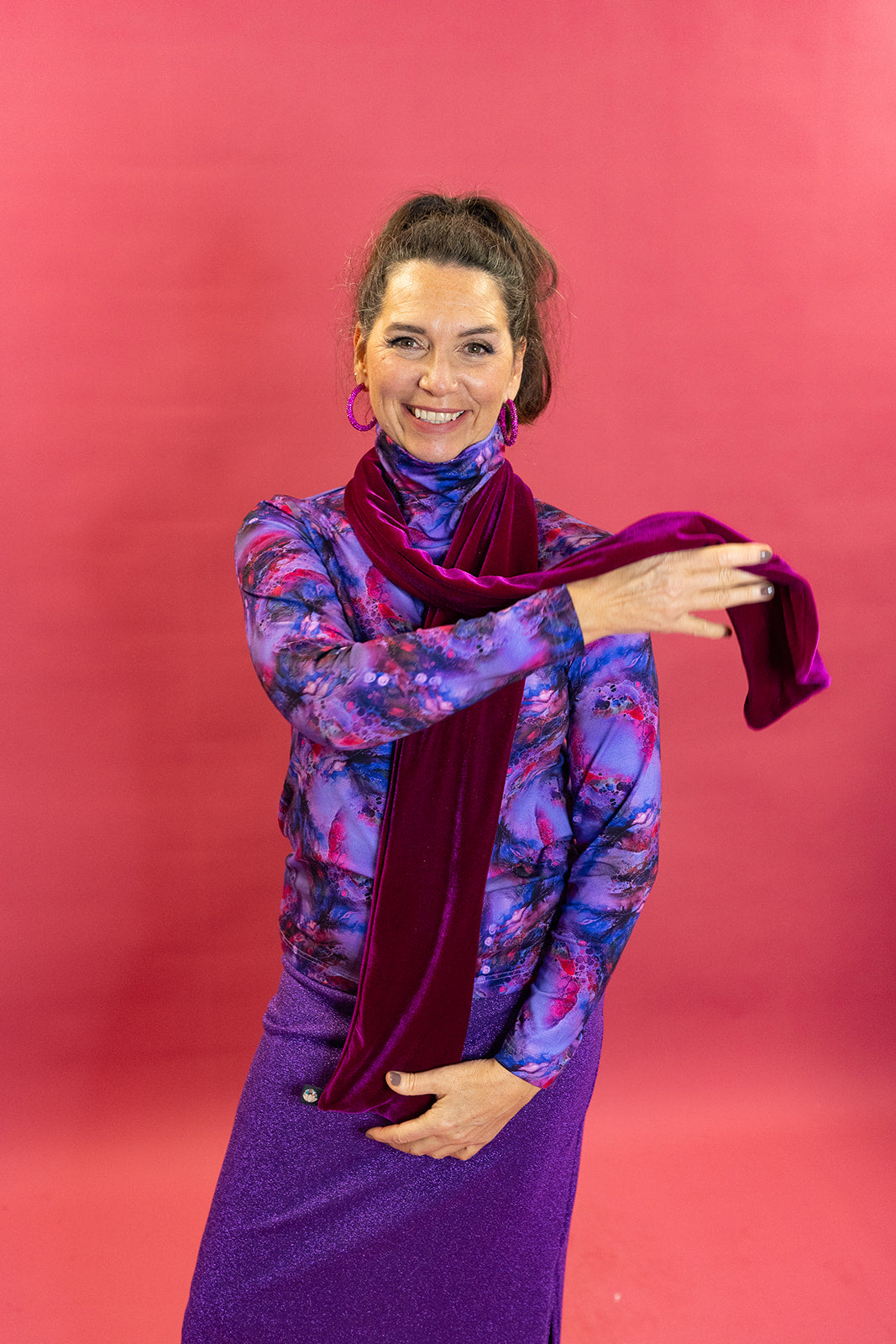 Luxurious velvet scarf in our gorgeous bright cerise velvet.