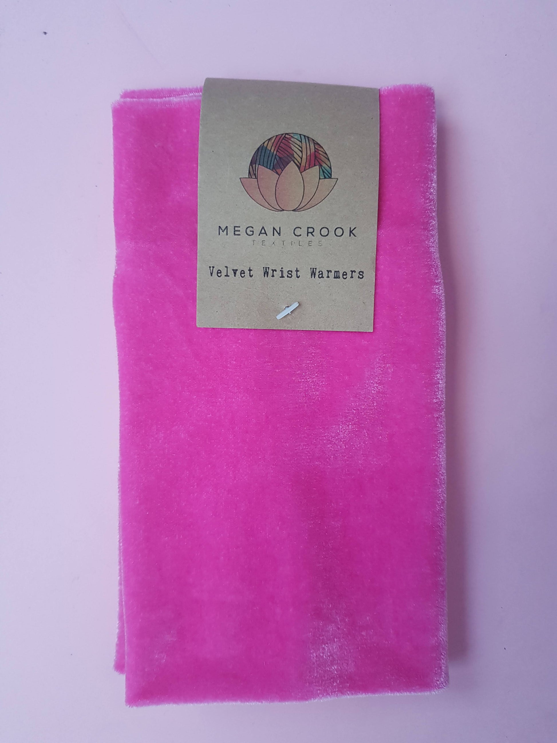 Velvet wrist warmers in bubblegum pink. To be worn as a fashionable extension to the sleeve, these wrist warmers are very comfortable to wear and are perfect for those with poor circulation.